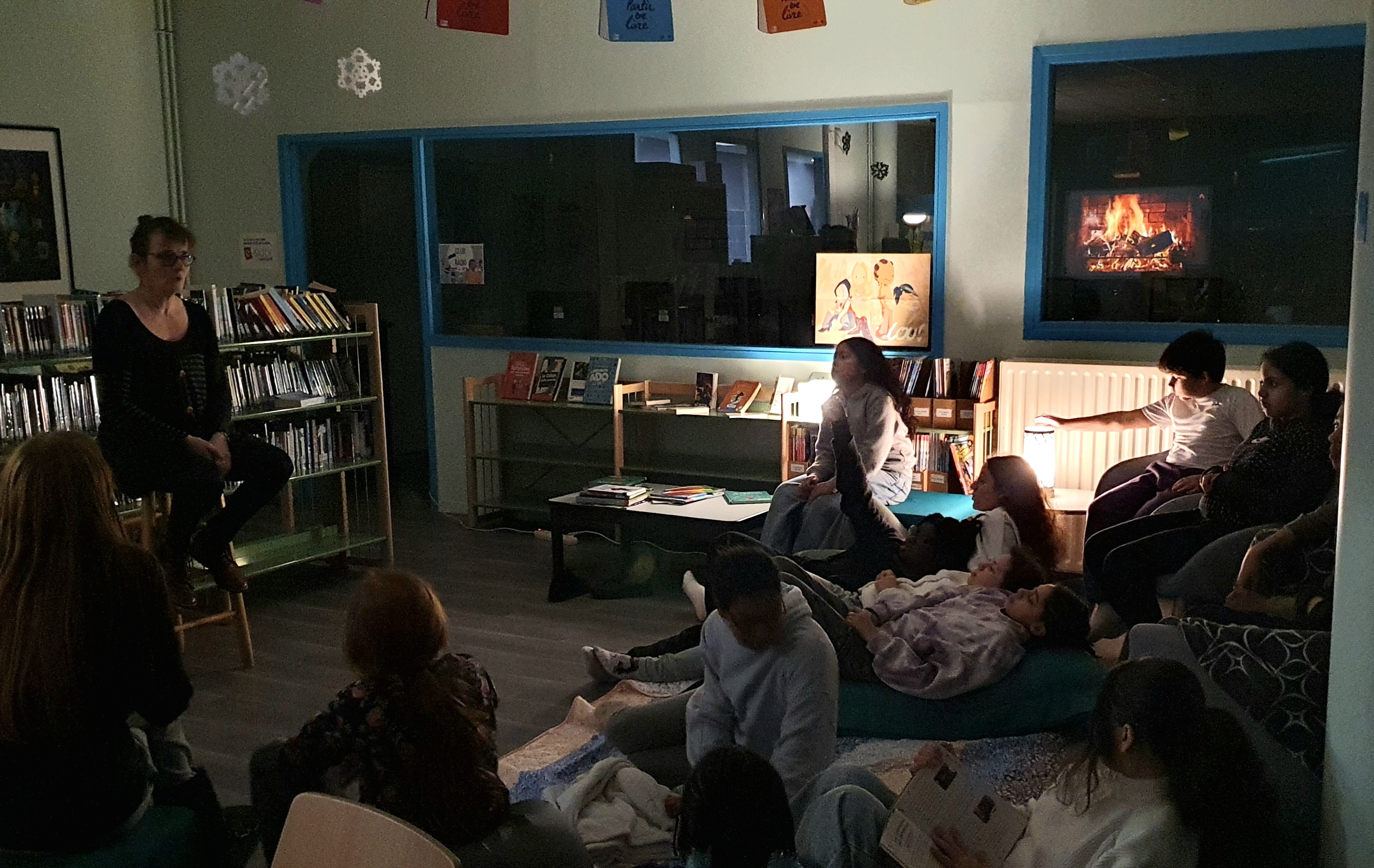 Les élèves ont partagé un goûter, suivi d’un temps d’écoute d’histoires tantôt frissonnantes, tantôt amusantes, tantôt attendrissantes sur le thème ville et campagne avec Sabine Richard, conteuse professionnelle.
